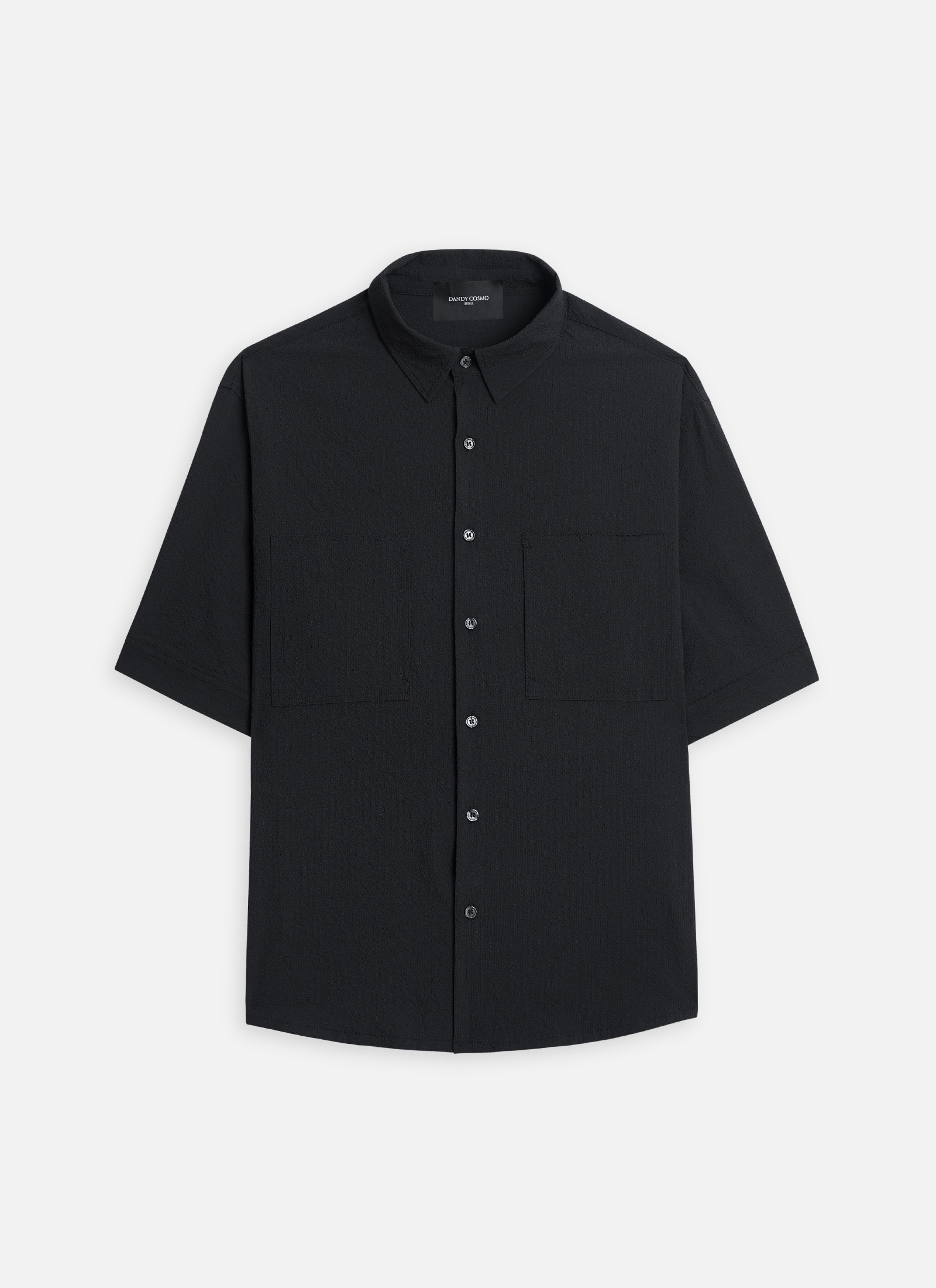 • เสื้อเชิ้ตแขนสั้น กระดุมสีดำด้าน คุมโทนทั้งชุด