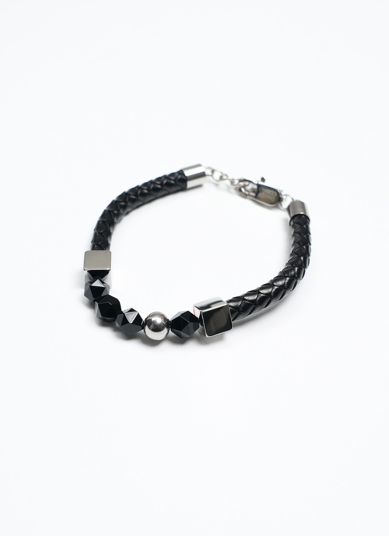 ผสมผสานสายหนังถักและเม็ดโลหะโทนดำเงิน