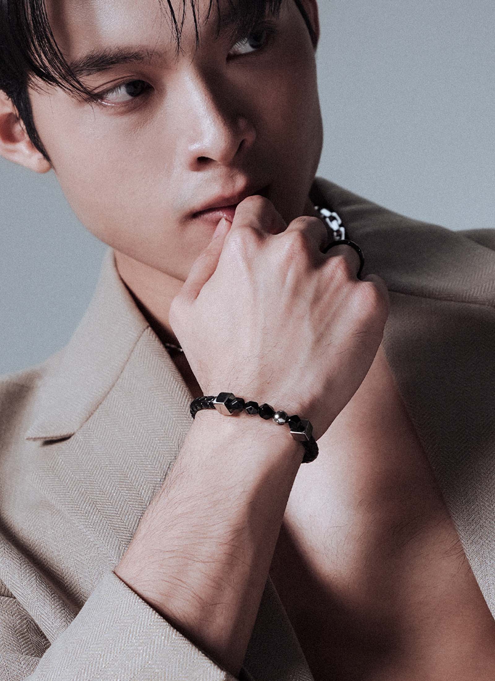 กำไลผู้ชายดีไซน์เรียบหรู โทนดำ–เงินแบบมินิมอล