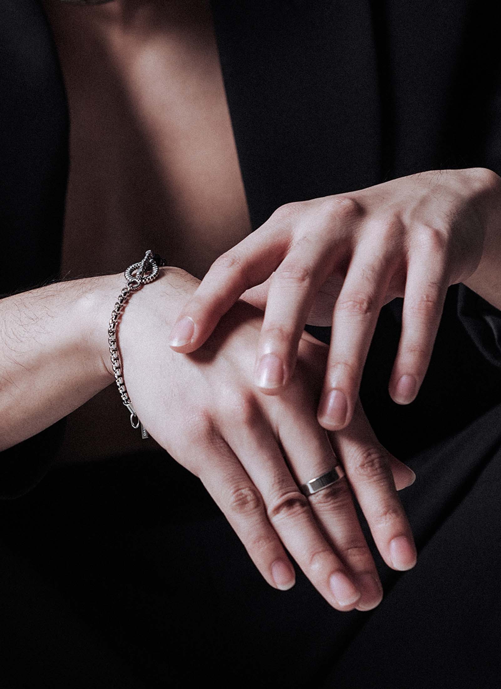 ออกแบบด้วยการผสานระหว่างโซ่สแตนเลสสตีลดีไซน์คลาสสิก กับหินโทนดำเข้มที่คัดเลือกอย่างพิถีพิถัน เสริมด้วยดีเทลโลหะทรงบิดที่โดดเด่น สื่อถึงความหนักแน่น ความมั่นคง และความเป็นผู้นำอย่างมีรสนิยม ตัวงานให้ลุคเข้ม สุขุม แต่แฝงด้วยความหรู เหมาะสำหรับ ผู้ชาย ที่ชอบเครื่องประดับมีคาแรกเตอร์ชัด ใส่แล้วเสริมบุคลิกให้ดูนิ่ง เท่ และทรงพลังในทุกโอกาส