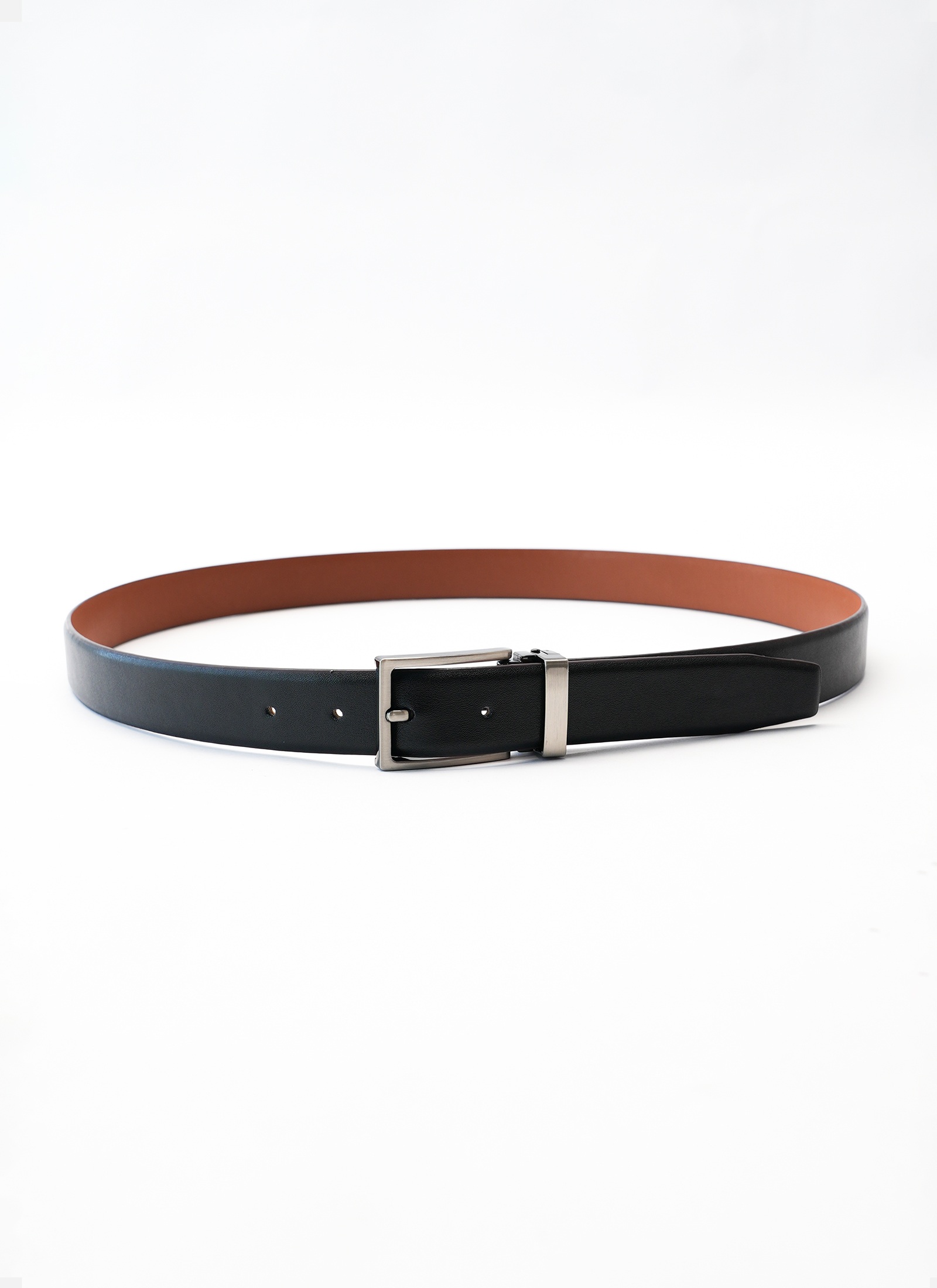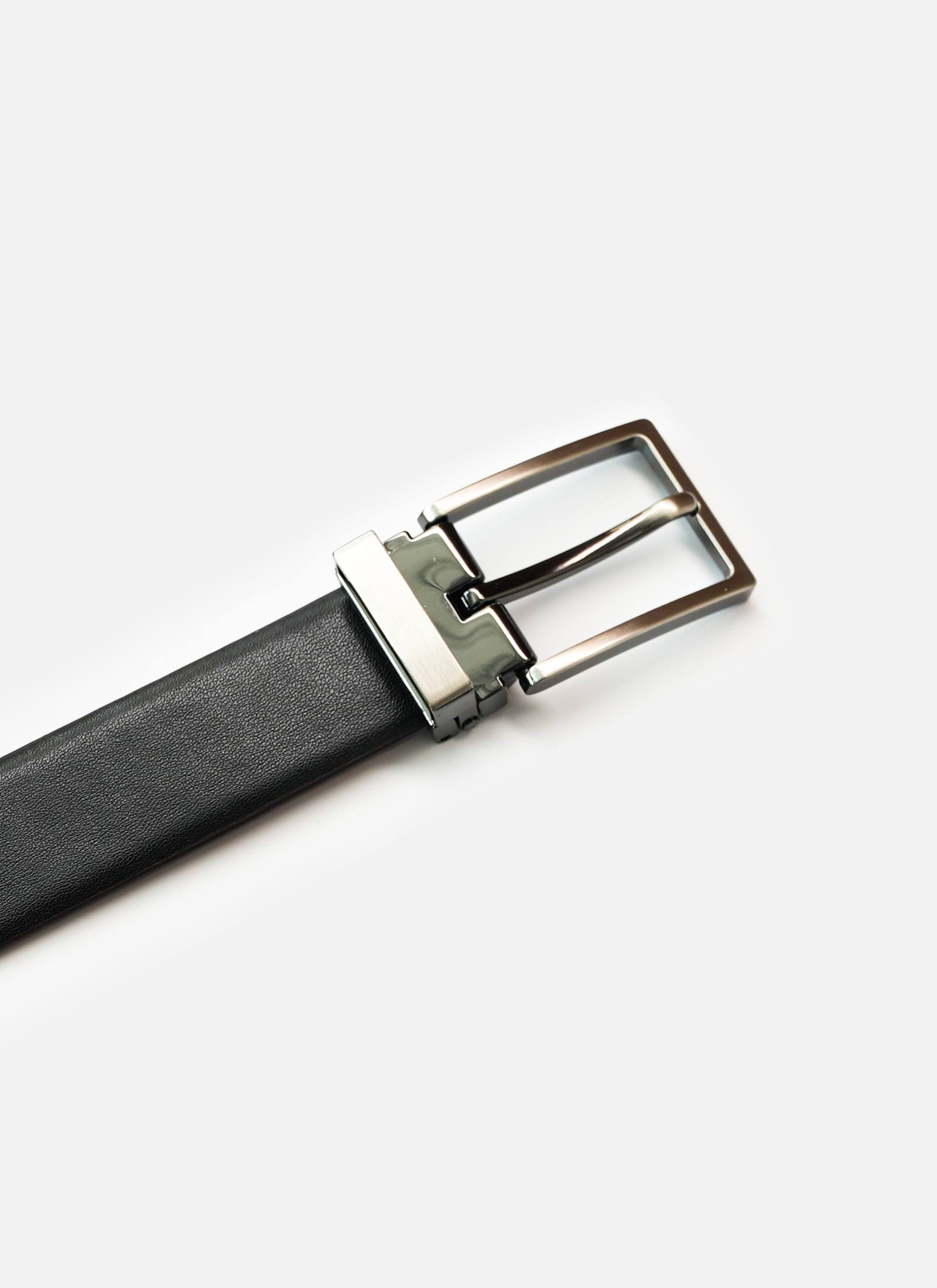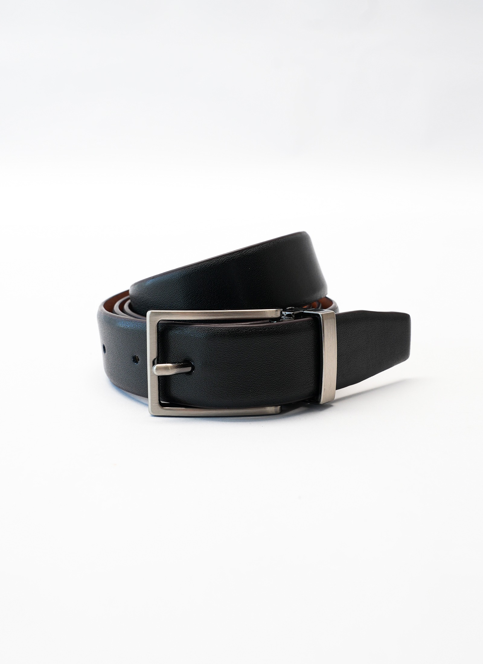 เข็มขัดผู้ชาย หนังแท้ทุกชั้น คุณภาพ PREMIUM MEN’S BELT ใส่ได้2สีในเส้นเดียว รุ่น RECTANGULAR สี SILVER BUCKLE