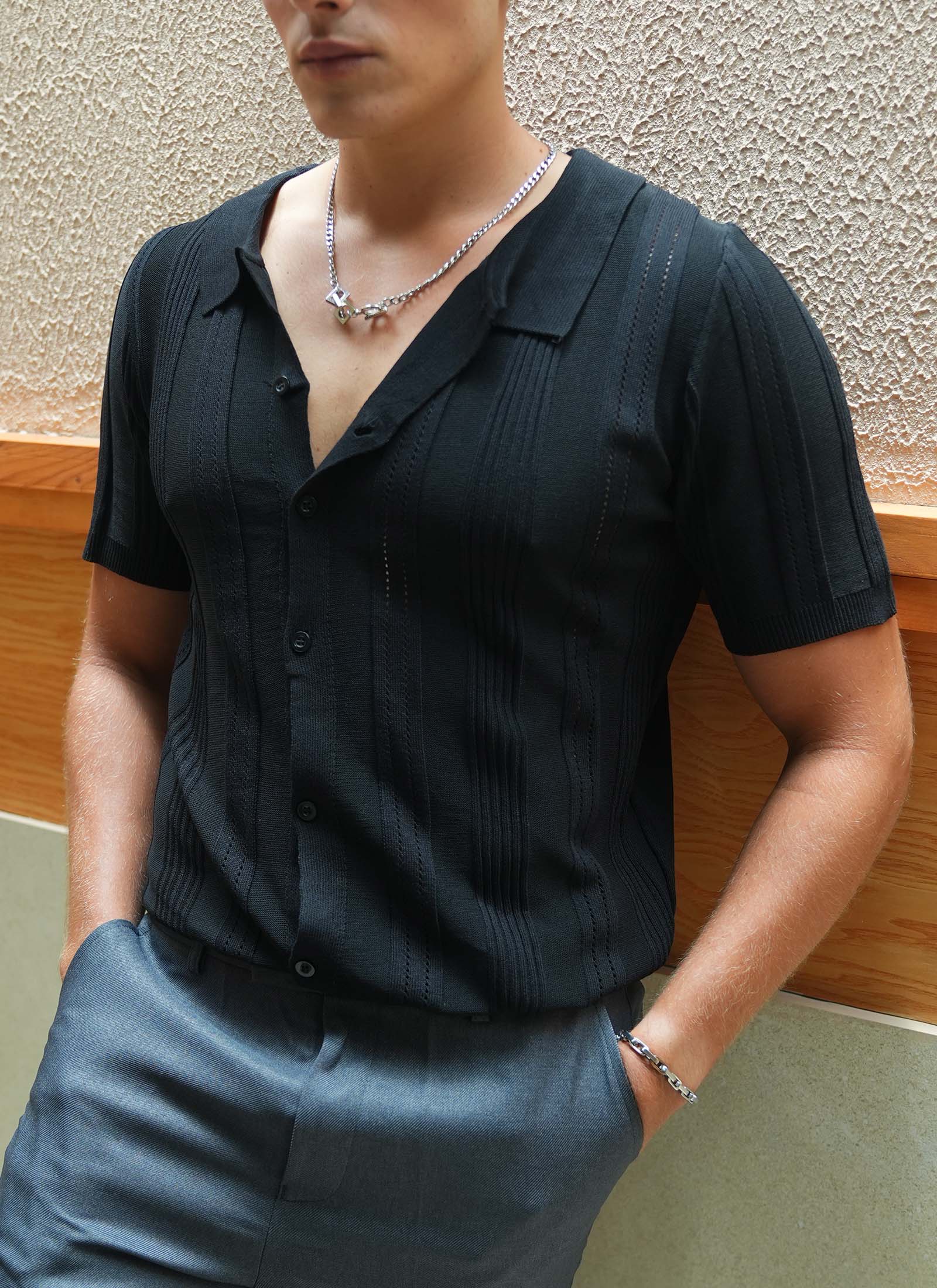 DANDY LABEL | [2 Colors] Men’s Elite Weave Knitted Sweater, Collar, Short Sleeves, Button Front, Versatile Wear (Buttoned or Open)