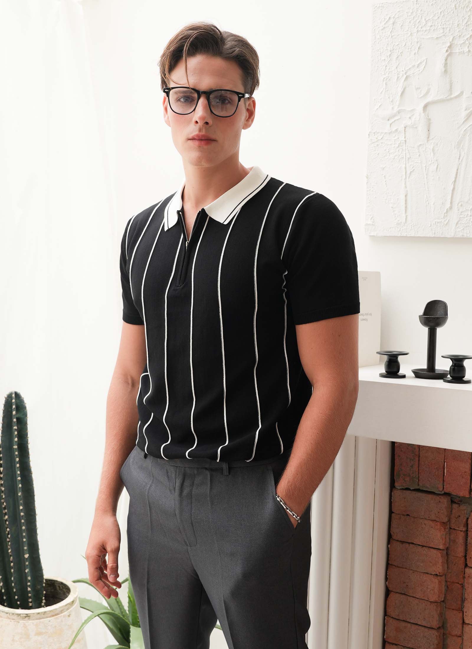 DANDY LABEL | [3 Colors] Men’s Linex Classic Zip Sweater, Short Sleeves, Korean Style, Comfortable, Breathable, Stylish Fit.