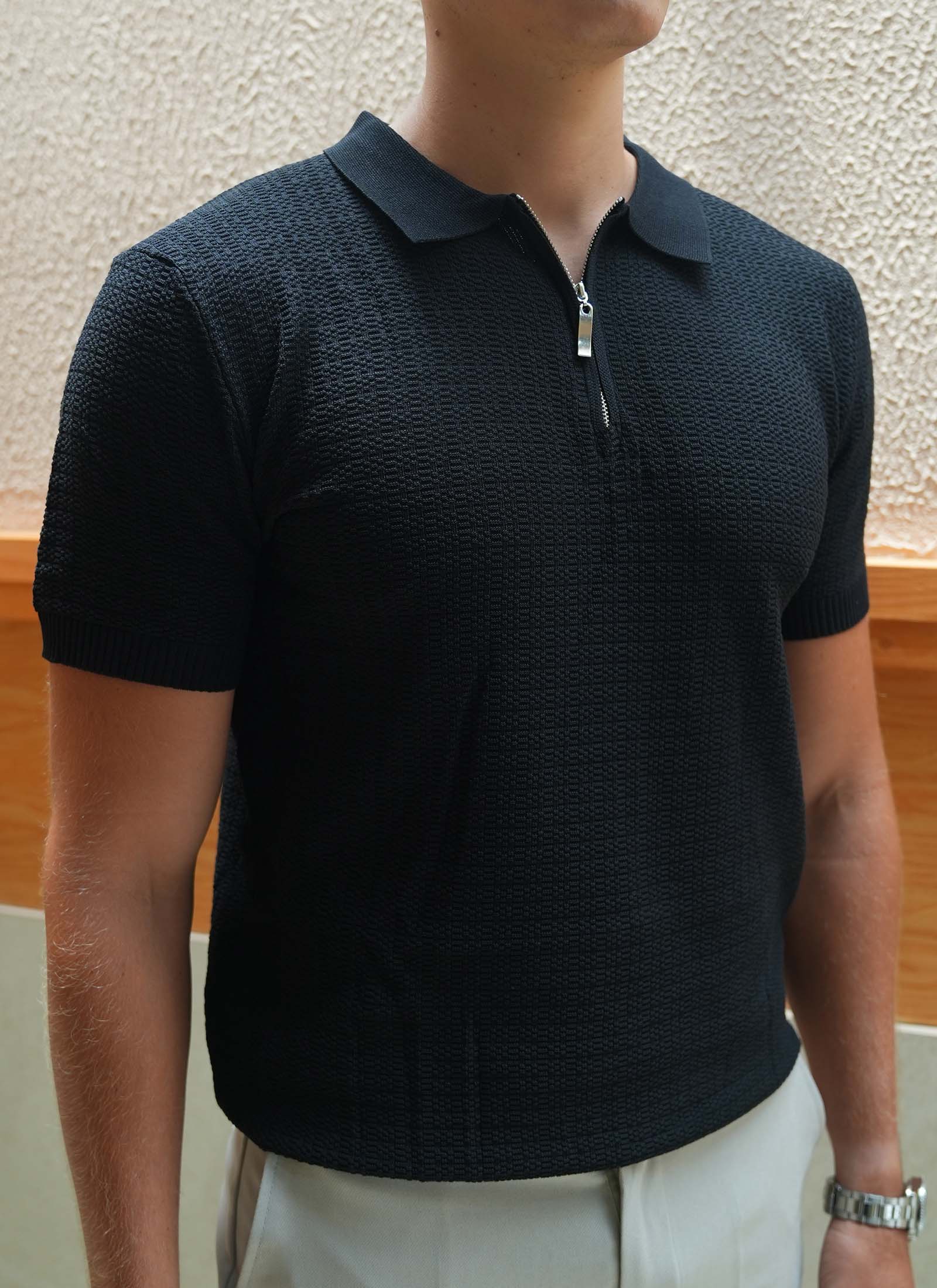 DANDY LABEL | [2สี] เสื้อไหมพรมผู้ชาย รุ่น MonoKnit Zip คอปกซิป แขนสั้น สไตล์เกาหลี ใส่สบาย ไม่ร้อน ทรงสวยมาก