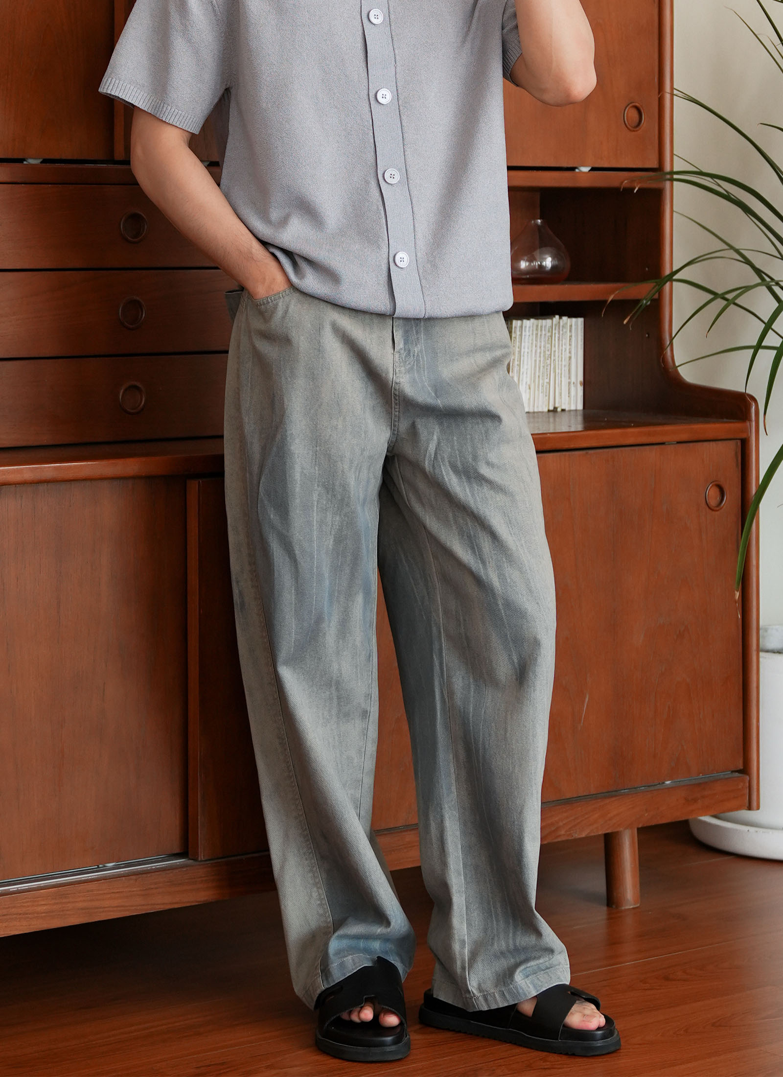 𝐏𝐫𝐨𝐝𝐮𝐜𝐭 𝐃𝐞𝐭𝐚𝐢𝐥 : กางเกงขายาว ทรงขาใหญ่ แต่งสียีนส์เฟด รุ่น NOMAD ทรงใหญ่กำลังดี ดีไซน์เก๋