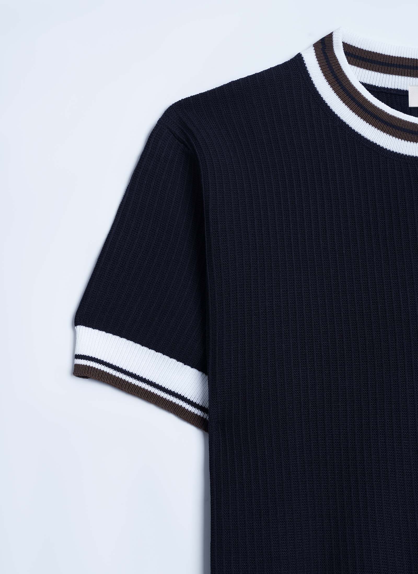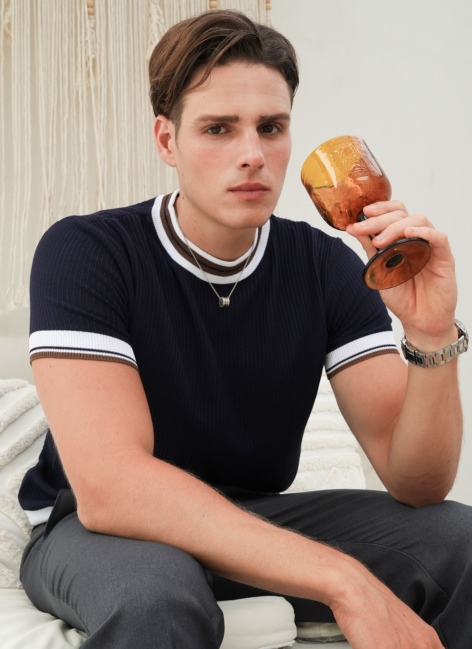 DANDY LABEL | [2 Colors] Men’s RivetLine-Knit Short-Sleeve Round-Neck Sweater, Korean Style, Comfortable, Breathable, and Stylish.