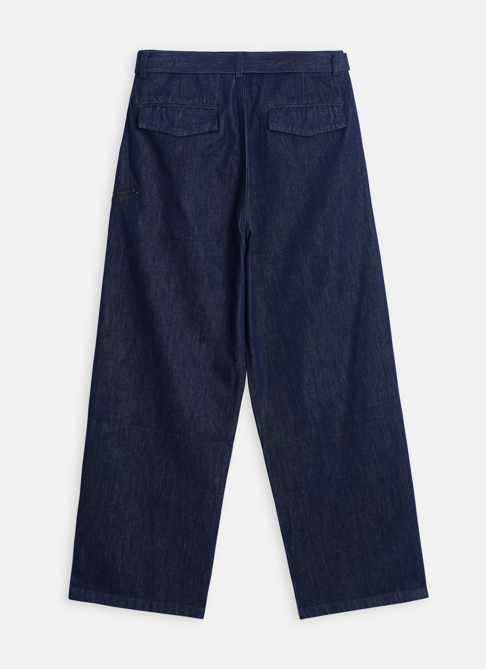 ทรงขากว้างแบบพอดี ไม่บานล้น ไม่ฟิตแนบ เสริมบุคลิกให้ดูมีน้ำหนักและทันสมัย มาพร้อม เข็มขัดผ้าในตัวแบบถอดได้ เพิ่มลูกเล่นและบาลานซ์ลุคแบบสตรีทโมเดิร์น มีกระเป๋าติดซิปเฉียงด้านข้าง และฝาปิดฝั่งตรงข้าม ทำให้ชุดดูมีมิติและฟังก์ชัน ทุกอย่างถูกออกแบบมาให้กลมกลืน แต่ยังแฝงความเฉียบอยู่ในทุกมุมมอง
