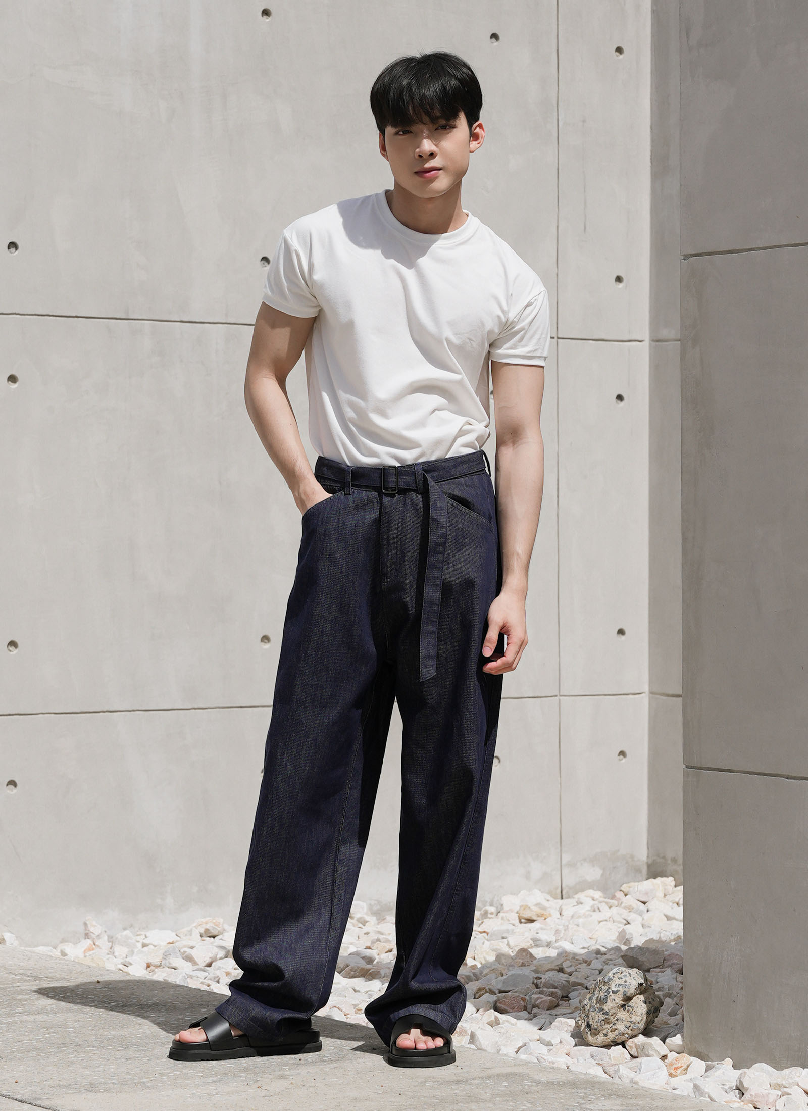 สี Indigo เข้มอมเทา แบบไม่ฟอก ดูหรูแบบลุคผู้ชายเกาหลีเรียบเท่